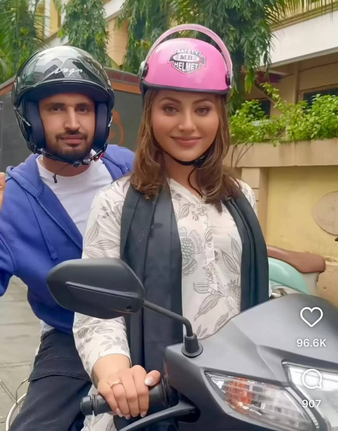 अभिनेत्री आखिरकार फिल्म के सेट पर शामिल हो गई हैं और फिल्म की शूटिंग फिलहाल जोरों पर है। सबसे लंबे समय तक, जब से यह बताया गया था कि उर्वशी रौतेला जस्सी गिल के साथ काम करेंगी, तब से अभिनेत्री के वैश्विक प्रशंसक भड़क गए और अब, जैसा कि अपेक्षित था, उर्वशी और जस्सी का नवीनतम वीडियो सचमुच इंटरनेट को तोड़ रहा है और कैसे। उर्वशी रौतेला और जस्सी गिल दोनों को 'डेम उर जीआरआर' ट्रेंड में शामिल होते हुए देखा गया और जैसा कि अपेक्षित था, प्रशंसक उनके ड्रॉप डेड भव्य लुक और वीडियो के मनोरंजन भाग की प्रशंसा किए बिना नहीं रह सके। उर्वशी रौतेला और जस्सी दोनों को मुस्कुराते हुए देखा जा सकता है और एक स्कूटी में उनके बिल्कुल प्रफुल्लित करने वाले मजाकिया तत्व में, वीडियो वास्तव में बहुत प्यारा है।