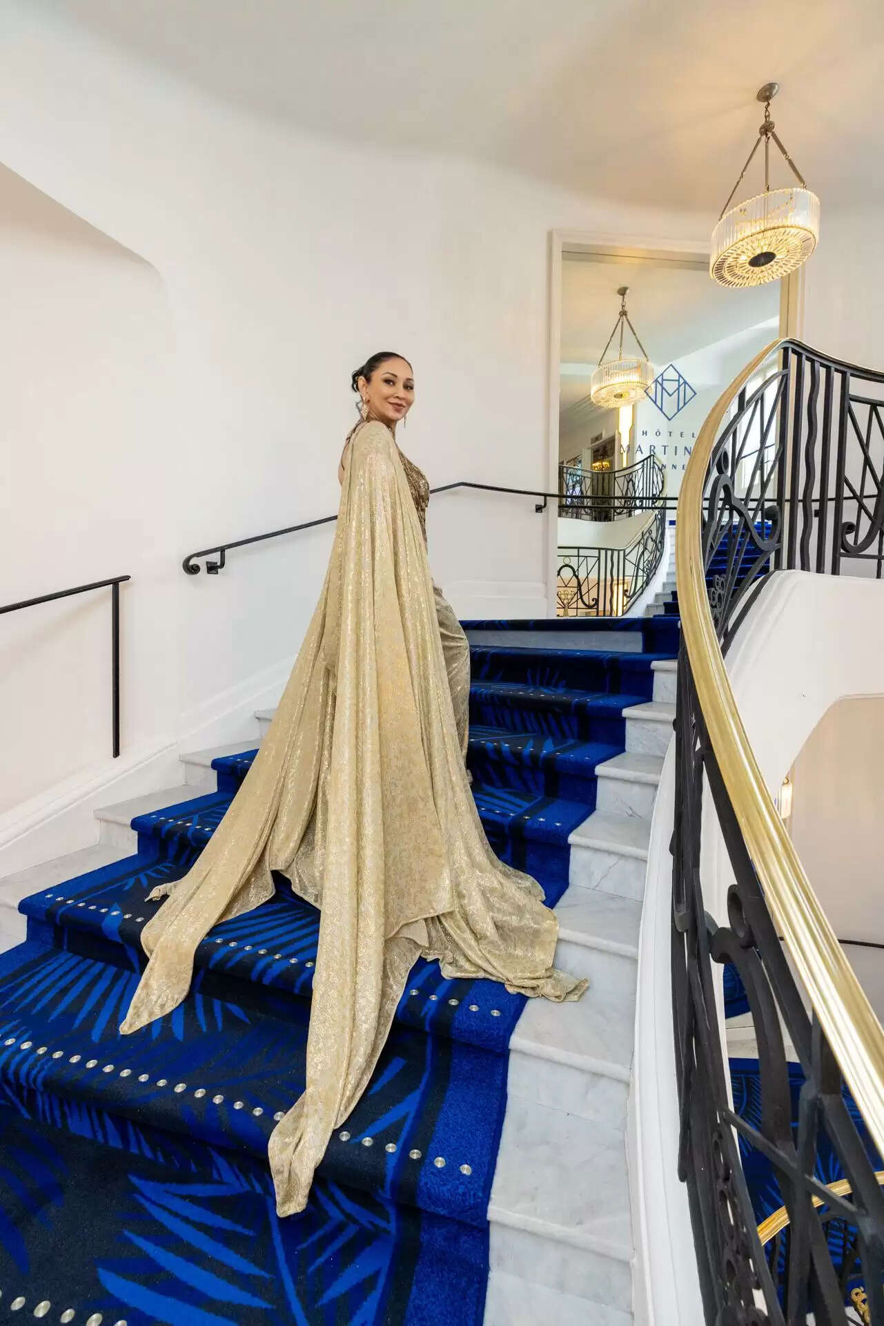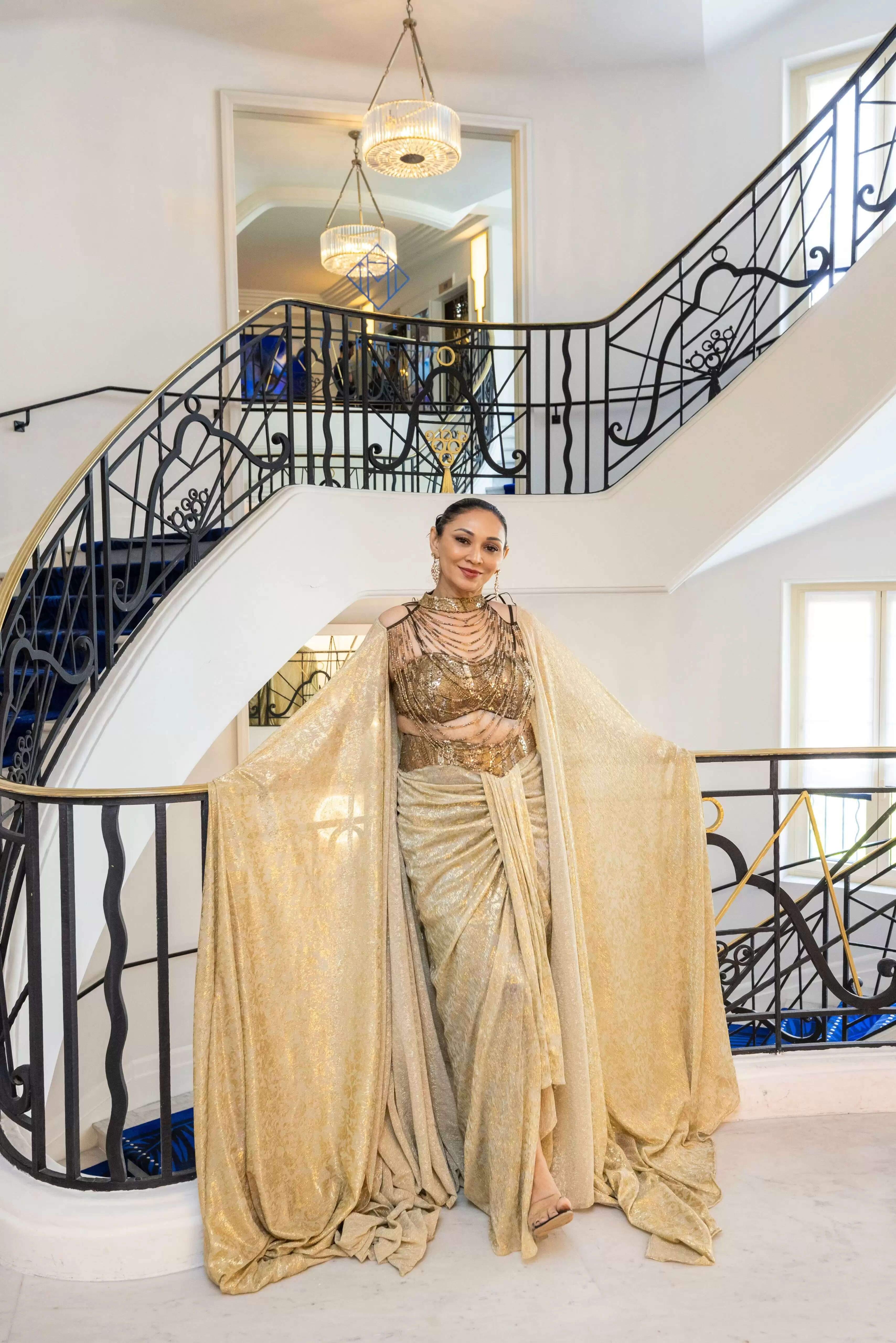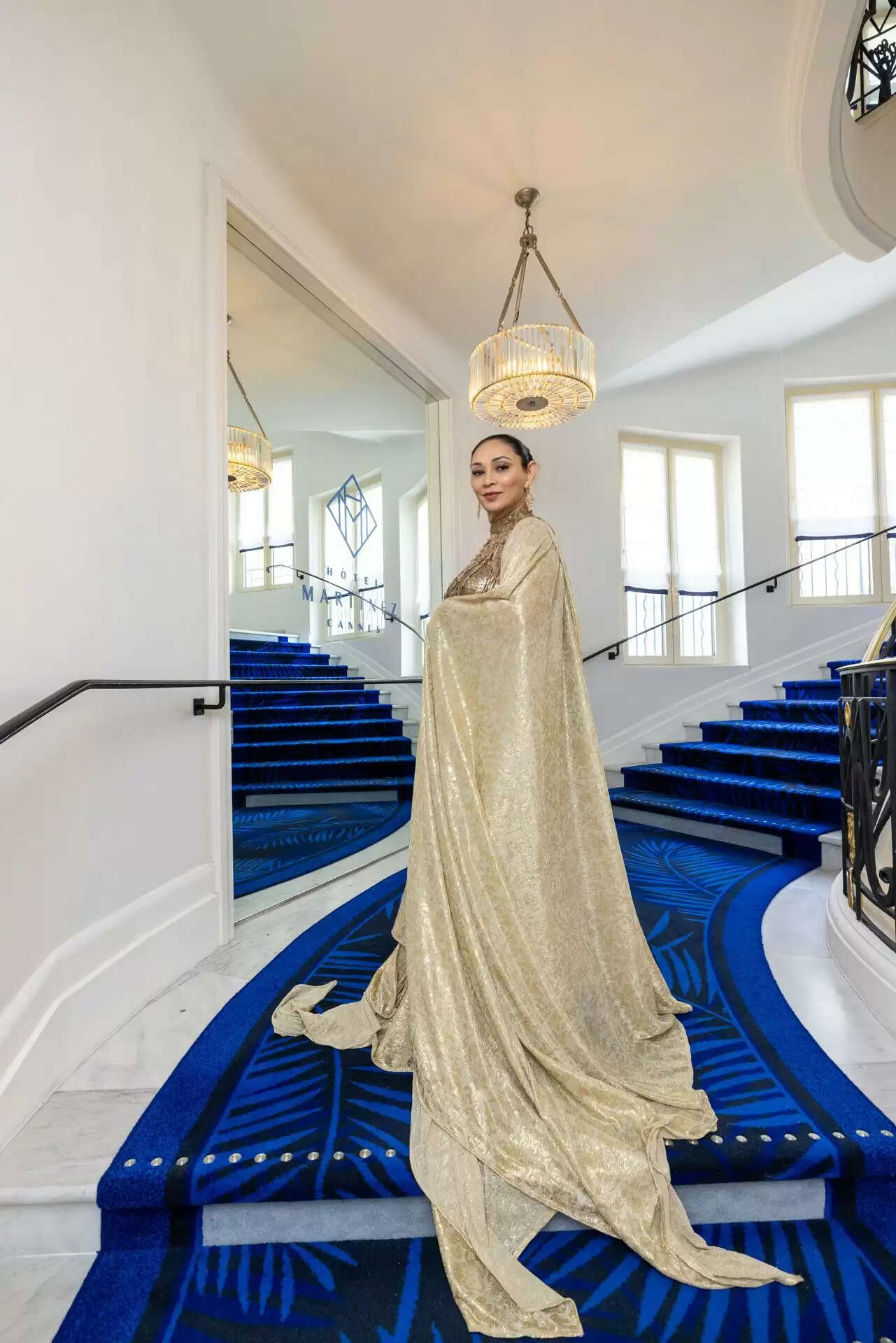 Walking the Cannes red carpet wearing Anjali Phougat couture, Vaishali wore gold not just as a color — but as a symbol. “Gold is elemental,” she explains. “It connects my two worlds. In my factory, we shape titanium and Inconel. On the runway, I wore something shaped to reflect light and identity. Both are statements of strength.”