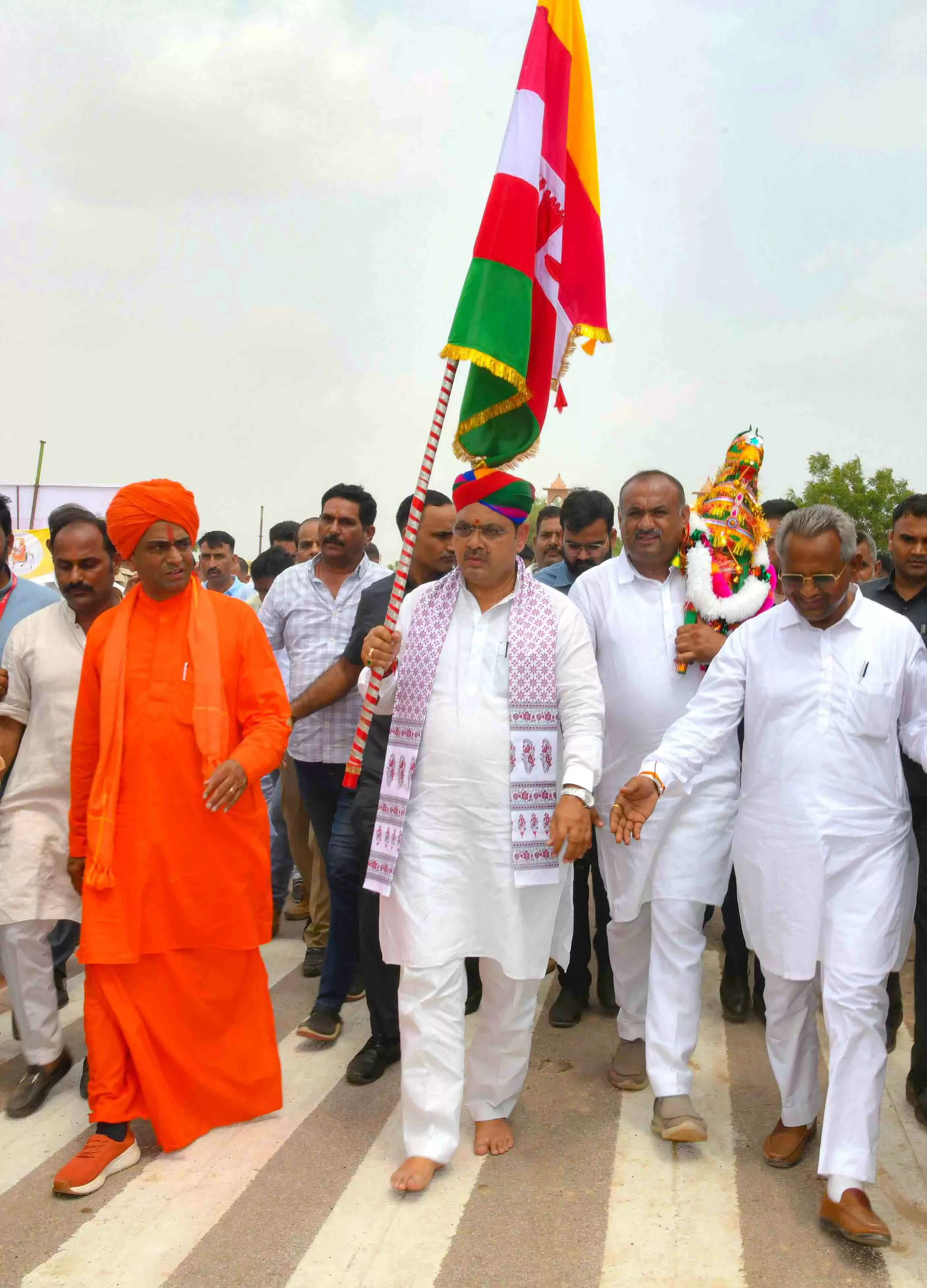 Jaisalmer: मुख्यमंत्री श्री भजनलाल शर्मा ने गुरूवार को एक दिवसीय जैसलमेर यात्रा के दौरान रामदेवरा में बाबा रामदेव पैनोरमा से बाबा रामदेव मंदिर तक पैदल यात्रा की। श्री शर्मा ने इस पदयात्रा के दौरान श्रद्धालुओं से आत्मीयता से मुलाकात की। श्रद्धालु भी अपने बीच मुख्यमंत्री को पाकर बेहद उत्साहित नजर आए।