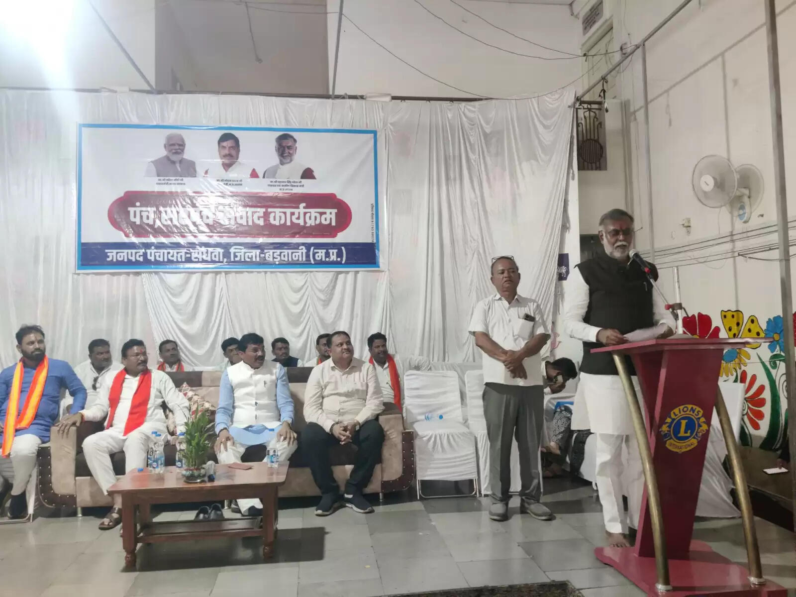 Bhopal: पंचायत एवं ग्रामीण विकास व श्रम मंत्री श्री प्रहलाद सिंह पटेल ने मंगलवार बड़वानी जिले के सेंधवा में स्थित लाइन्स कान्वेंट स्कूल के मीटिंग हॉल में पंच सरपंच संवाद कार्यक्रम में क्षेत्र के पंच एवं सरपंचों से संवाद किया।